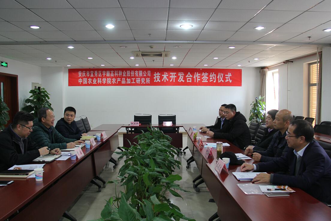 11月27日下午,中國(guó)農(nóng)業(yè)科學(xué)院農(nóng)產(chǎn)品加工所與我公司簽約儀式在北京舉行。中國(guó)農(nóng)業(yè)科學(xué)院農(nóng)產(chǎn)品加工研究所黨委書(shū)記王長(zhǎng)江、安慶市宜秀區(qū)區(qū)委書(shū)記婁雪松、成果轉(zhuǎn)化處副處長(zhǎng)常盛、新資源食品研究中心研究員佟立濤、區(qū)農(nóng)業(yè)農(nóng)村局局長(zhǎng)潘緒中、區(qū)文化和旅游局局長(zhǎng)何反修、區(qū)林業(yè)局副局長(zhǎng)李凱以及公司創(chuàng)始人王發(fā)文等出席。 雙方將本著“真誠(chéng)合作、互利共贏、由點(diǎn)及面、持續(xù)發(fā)展”的原則,在科技合作、成果轉(zhuǎn)化、產(chǎn)品研發(fā)等方面開(kāi)展技術(shù)合作,持續(xù)將中國(guó)農(nóng)業(yè)科學(xué)院的科技、資源、人才優(yōu)勢(shì)轉(zhuǎn)化為我司創(chuàng)新優(yōu)勢(shì)和競(jìng)爭(zhēng)優(yōu)勢(shì),為推進(jìn)特色稻產(chǎn)業(yè)集群項(xiàng)目建設(shè)及特色紅米產(chǎn)業(yè)發(fā)展提供科技支撐。