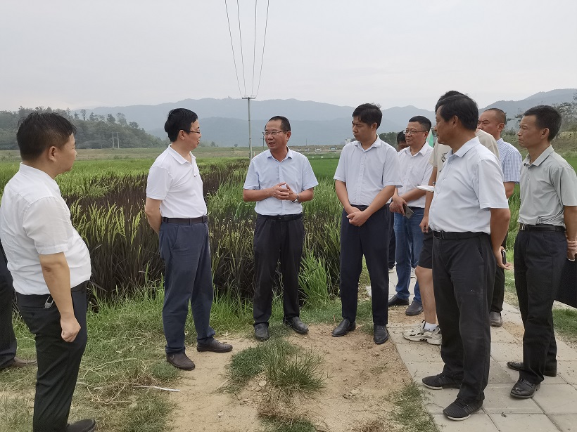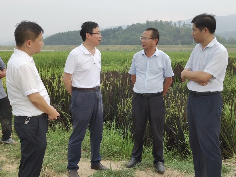 在回音谷生態(tài)基地現(xiàn)場,胡紅兵調(diào)研團(tuán)一行實(shí)地了解回音谷生態(tài)基地紅稻的抗旱工作開展情況、紅稻生長情況、特色紅稻產(chǎn)業(yè)發(fā)展以及國家級(jí)種質(zhì)資源圃申報(bào)情況。